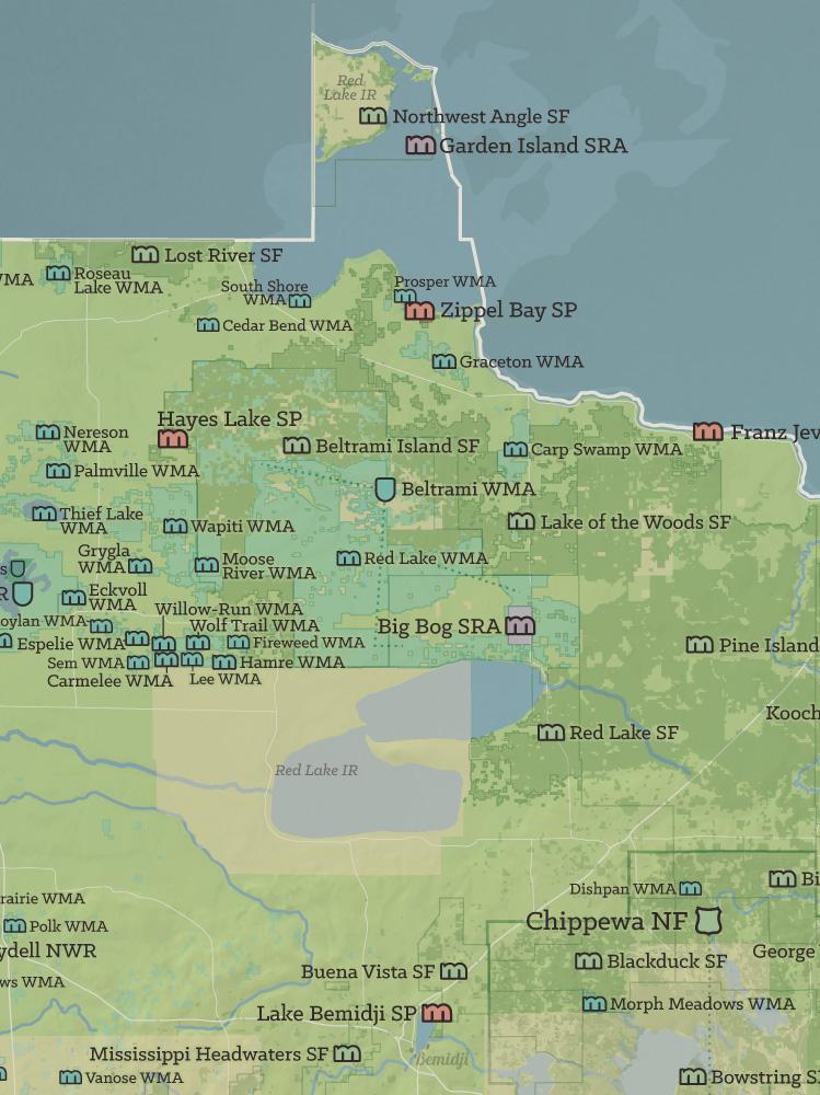 Big Bog State Park Map Waskish MNlrm โข mappery